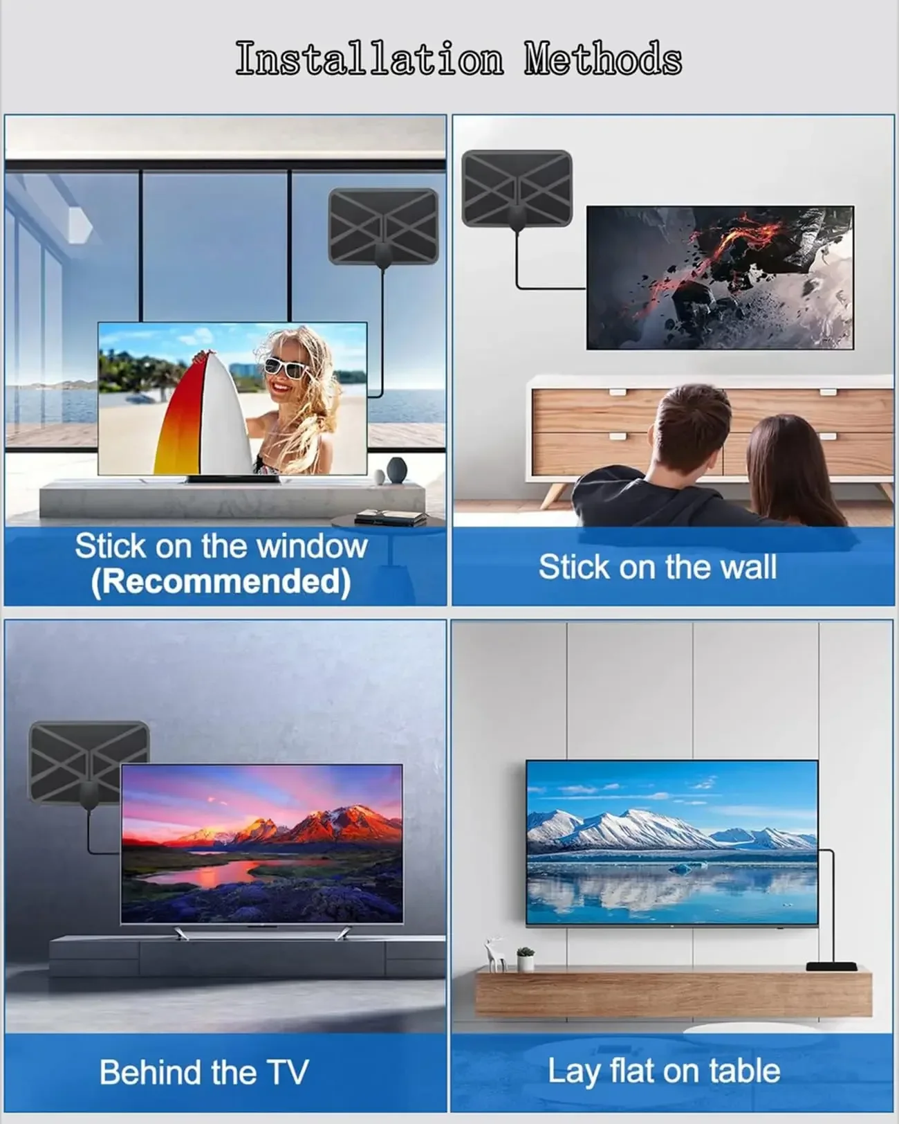 2.Place the antenna, preferably on a window or as high as possible.